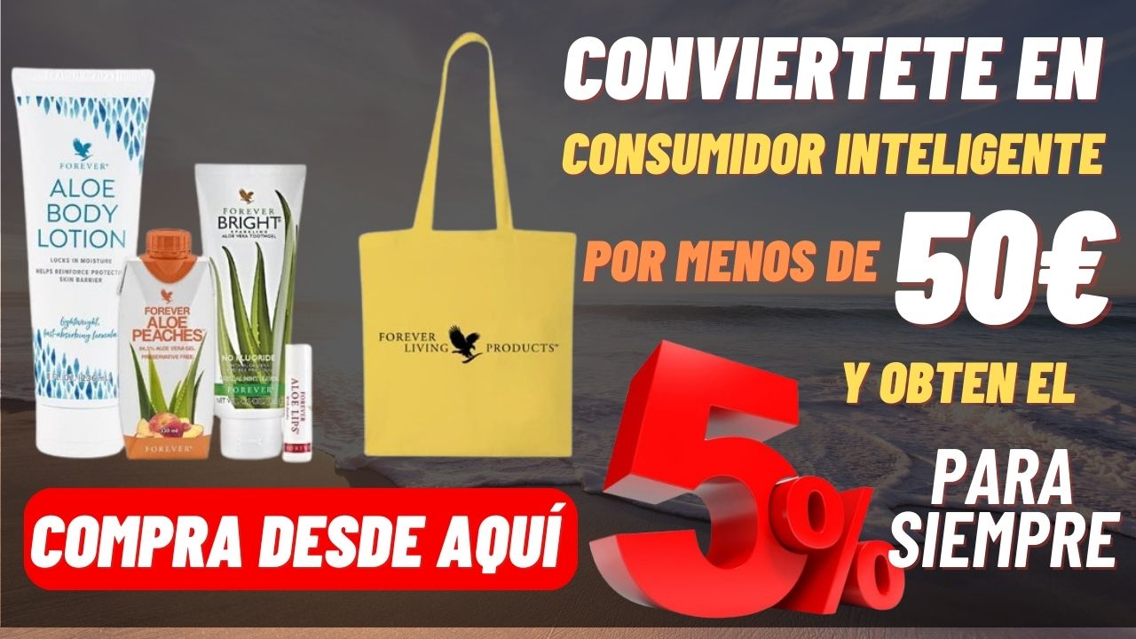 Además, con tu primera compra, te convertirás en un Consumidor Inteligente y disfrutarás de un 5% de descuento en todas tus futuras compras de Productos Forever.